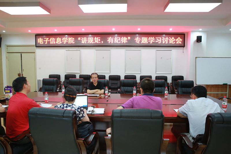 “讲规矩、有纪律”专题讨论会在基础教学楼A303会议室举行。副校长晏世经、全体院领导参加了会议。学习讨论会由院党委书记蒋斌主持。