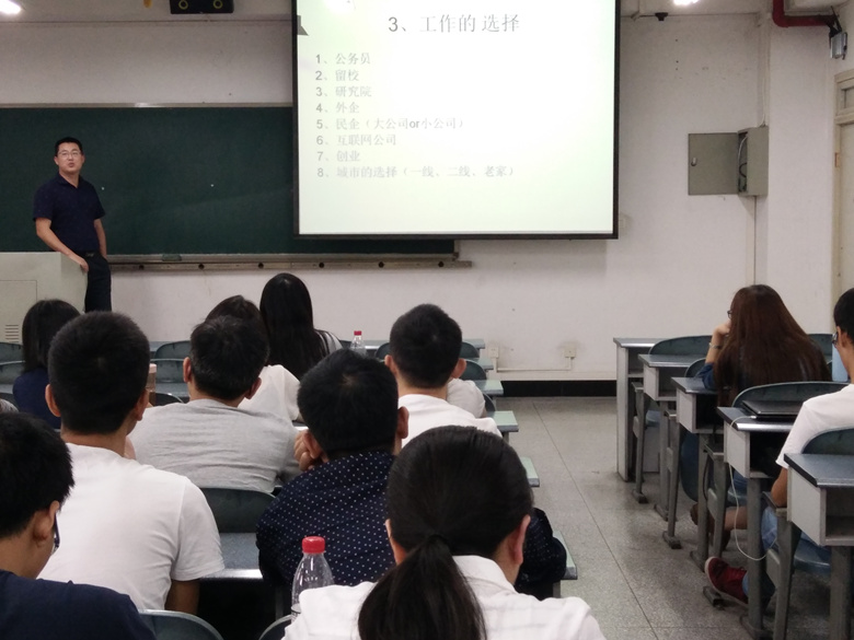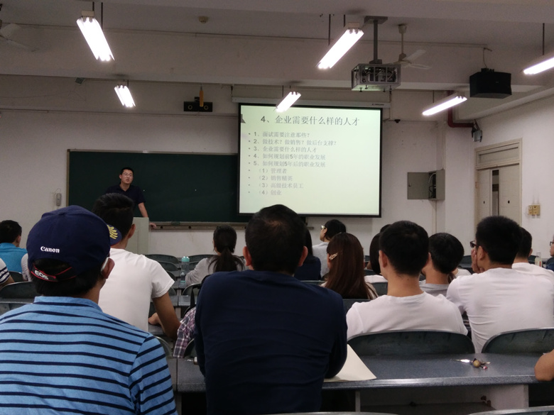 校庆系列讲座之——大学生的职业规划与职场生态特色讲座在望江校区基教A506顺利开讲。历时两个小时后讲座圆满结束。a漫
