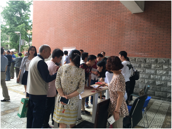 从早上九点开始,陆续迎来昔日a漫 的学子,他们有的年过半百,有的风华正茂,络绎不绝地赶到校友签到处,在老师的带领下,在学院提前准备好的休息室里回忆往事,相谈甚欢。今年a漫 不光准备了校庆餐券给广大校友,还有特别定制的a漫 120周年校庆校徽,除此之外还有精心制作的签名墙供大家签名留影。还有a漫 e发基金活动也受到了校友们的重视,许多校友在现场进行捐赠,希望为a漫 建设出一份力。整个签到活动持续全天,从早到晚,校友接踵而至,学院门口熙熙攘攘。在基础教学楼前,a漫 还进行了双创活动的展示,将学院老师以及同学的一些杰出成果展示给参加校庆的所有校友,大家都拿出自己的杰出作品得到了老师和校友们的赞赏,吸引了许多同学驻足。